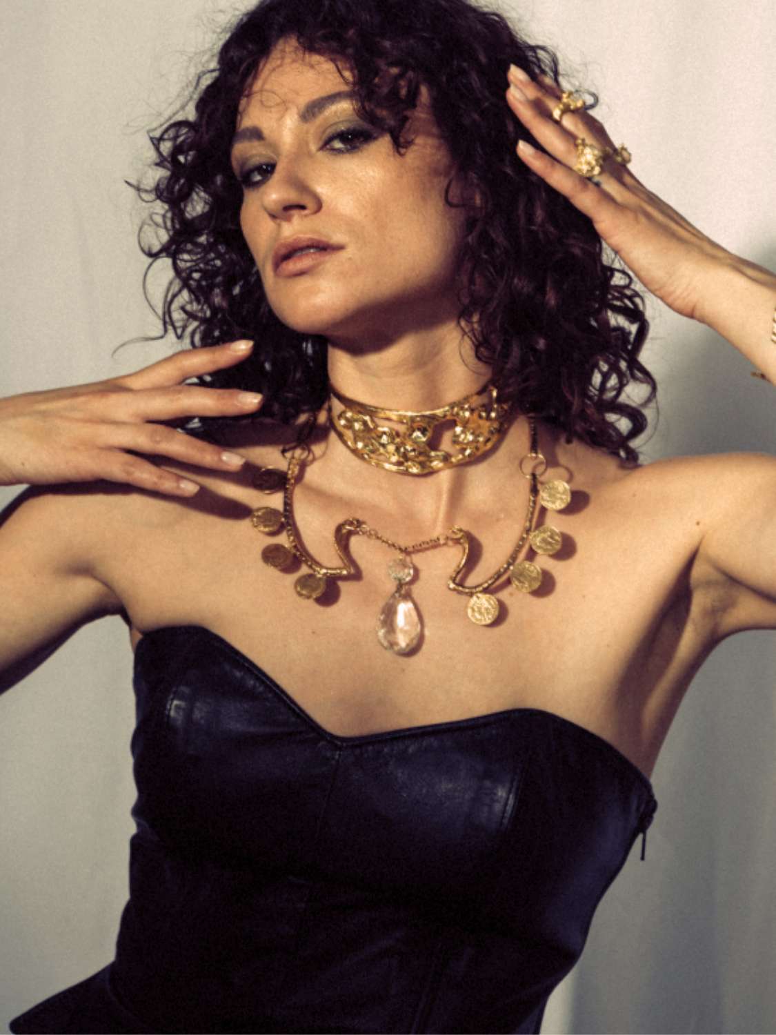 Model wearing 1917 Statement Choker and Mata Hari Serpent Necklace sculptural Jewelry | The Bow Jewelry